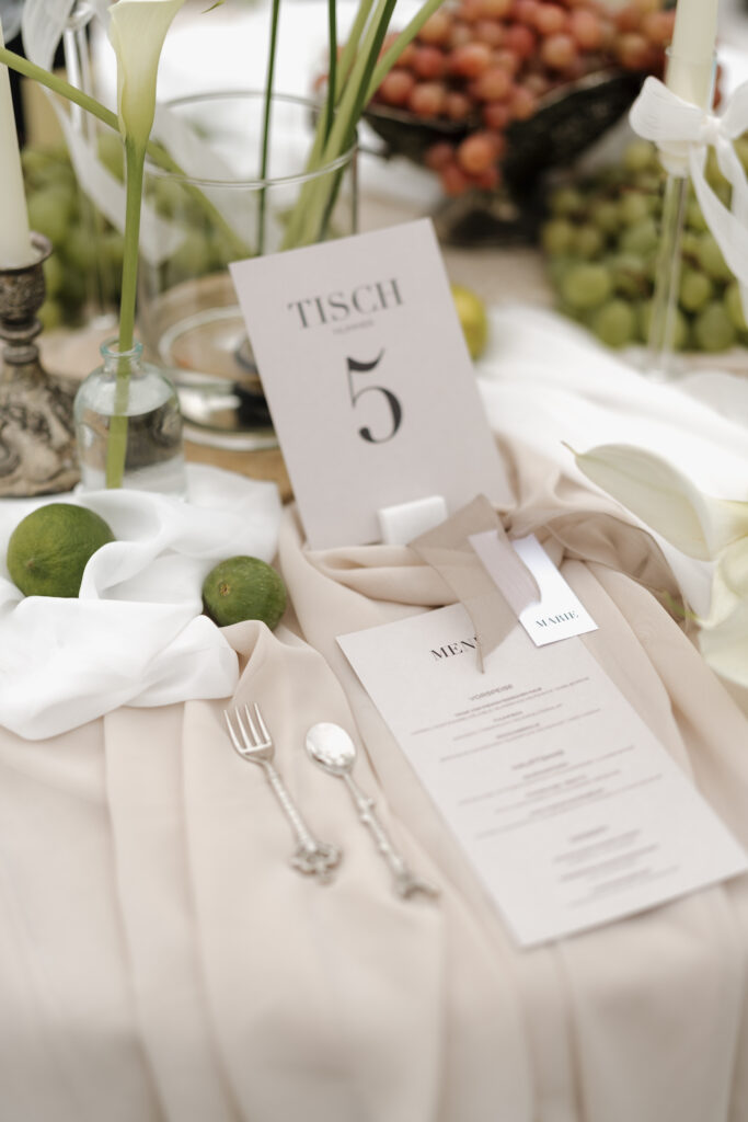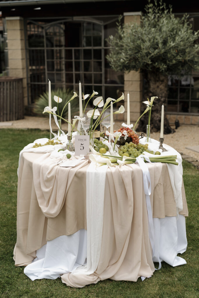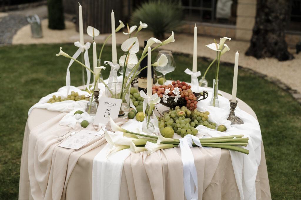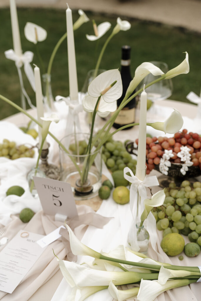 Edle Calla-Lilien, Trauben-Details und eine harmonische Farbwelt verleihen diesem Hochzeitstag eine außergewöhnliche Atmosphäre.